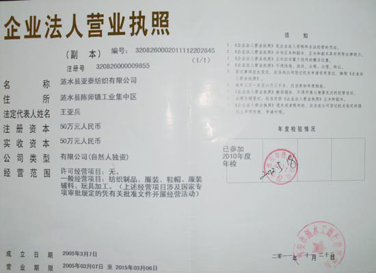 漣水縣亞泰紡織有限公司